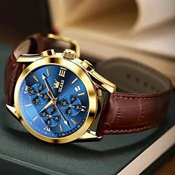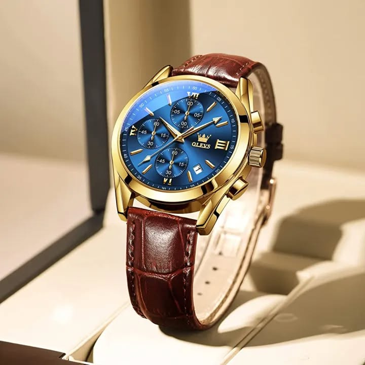OLEVS Luxury Watch for Men - প্রিমিয়াম ব্লু ডায়াল ও গোল্ডেন ক্রোনোগ্রাফ ঘড়ি ⌚✨